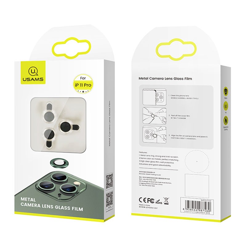 - 3 х USAMS Metal Camera Lens Glass Film - 1 x микрофибърна кърпичка - 1 х мокра кърпичка - 1 х антистатична лепенка за премахване на прашинки