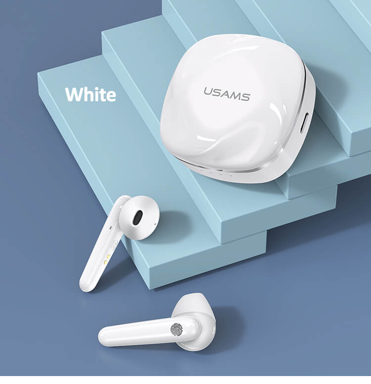 - 1 x USAMS SD001 TWS Earbuds - 1 x зареждащ кейс - 1 x MicroUSB кабел - 2 х силиконов тапи за ухо - 1 х ръководство