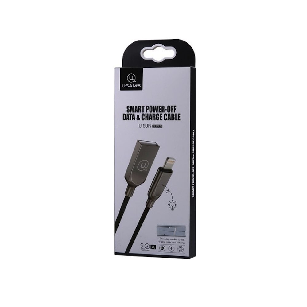 Usams U-Sun Smart Power-Off Lightning to USB Cable - USB към Lightning кабел за Apple устройства с Lightning порт (60 см) (черен)