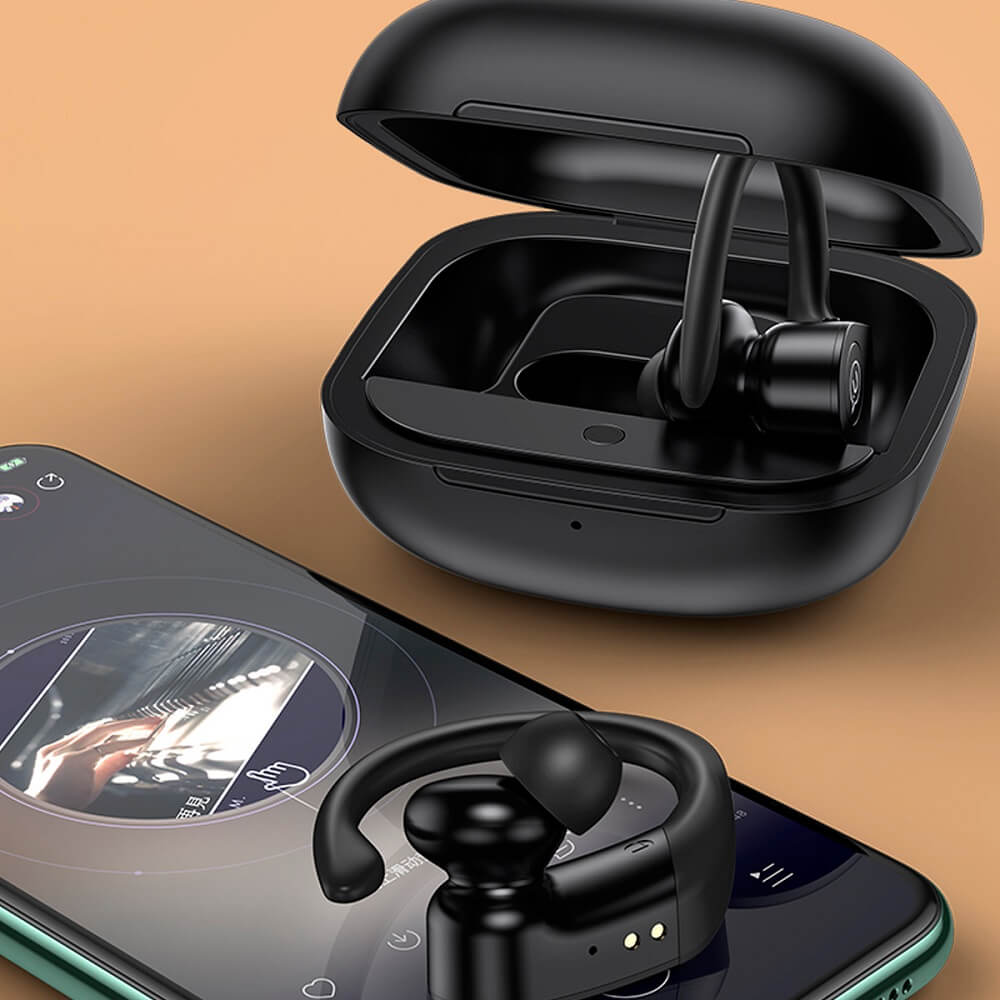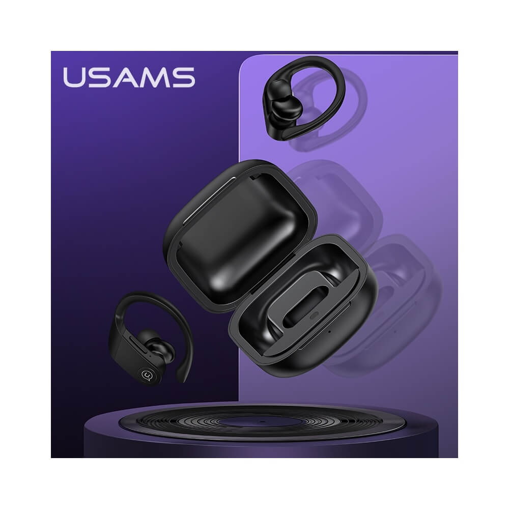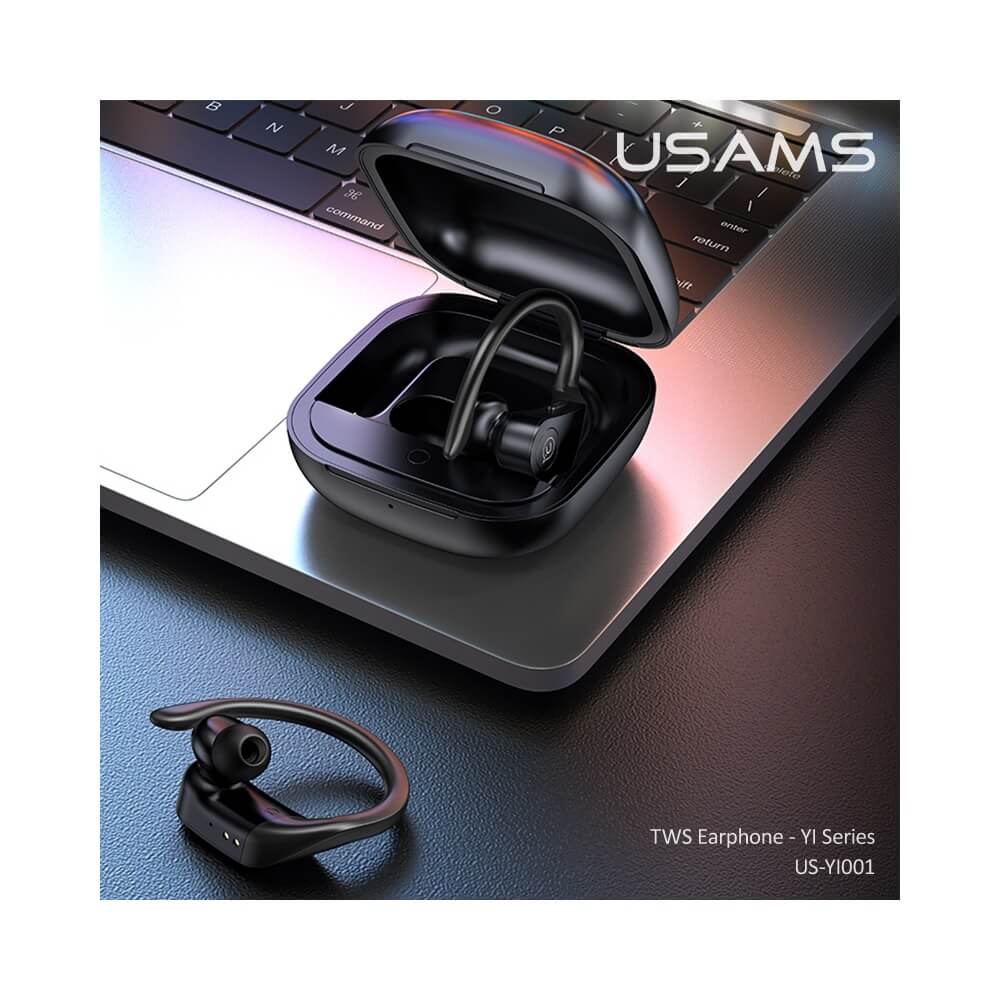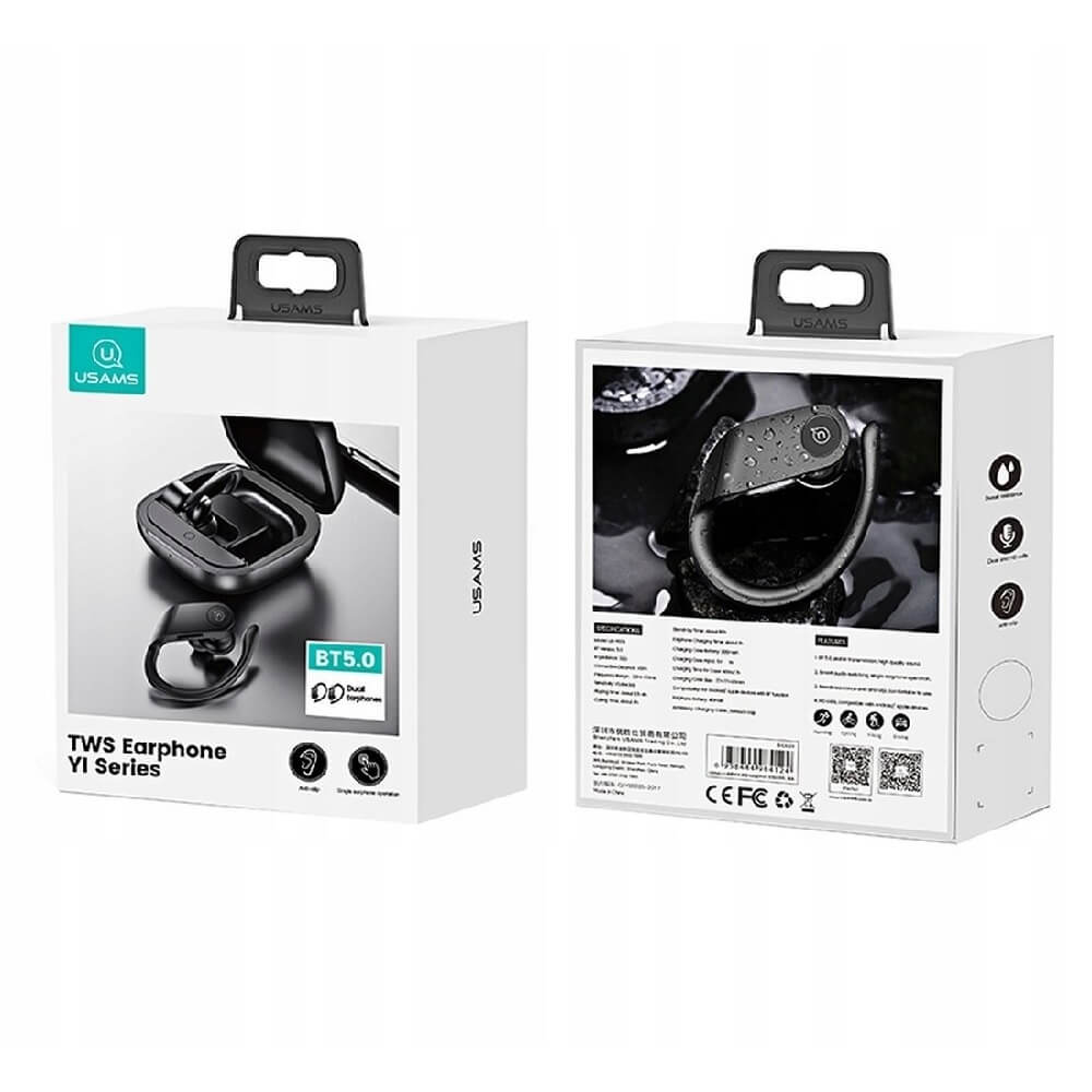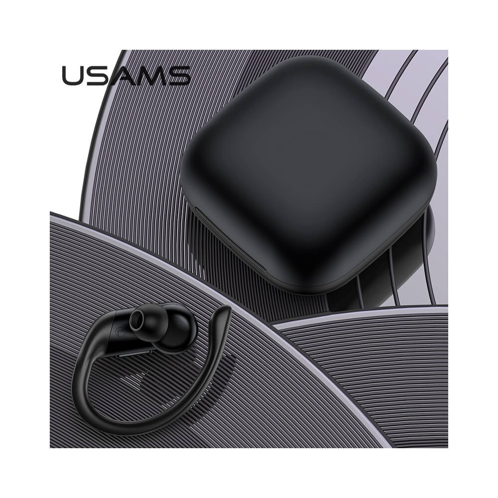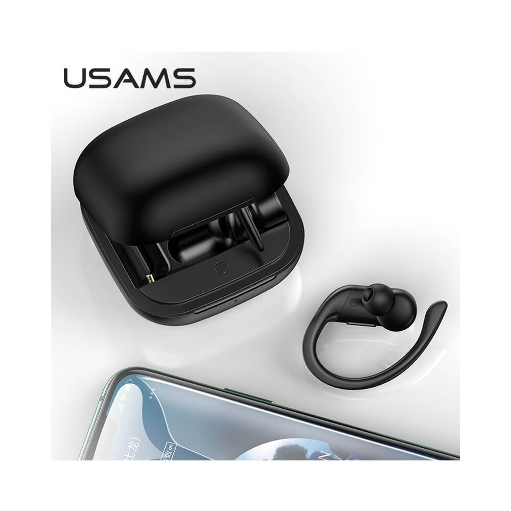 USAMS YI001 Ear Hook TWS Waterproof Earphones - безжични блутут слушалки със зареждащ кейс за мобилни устройства (черен)