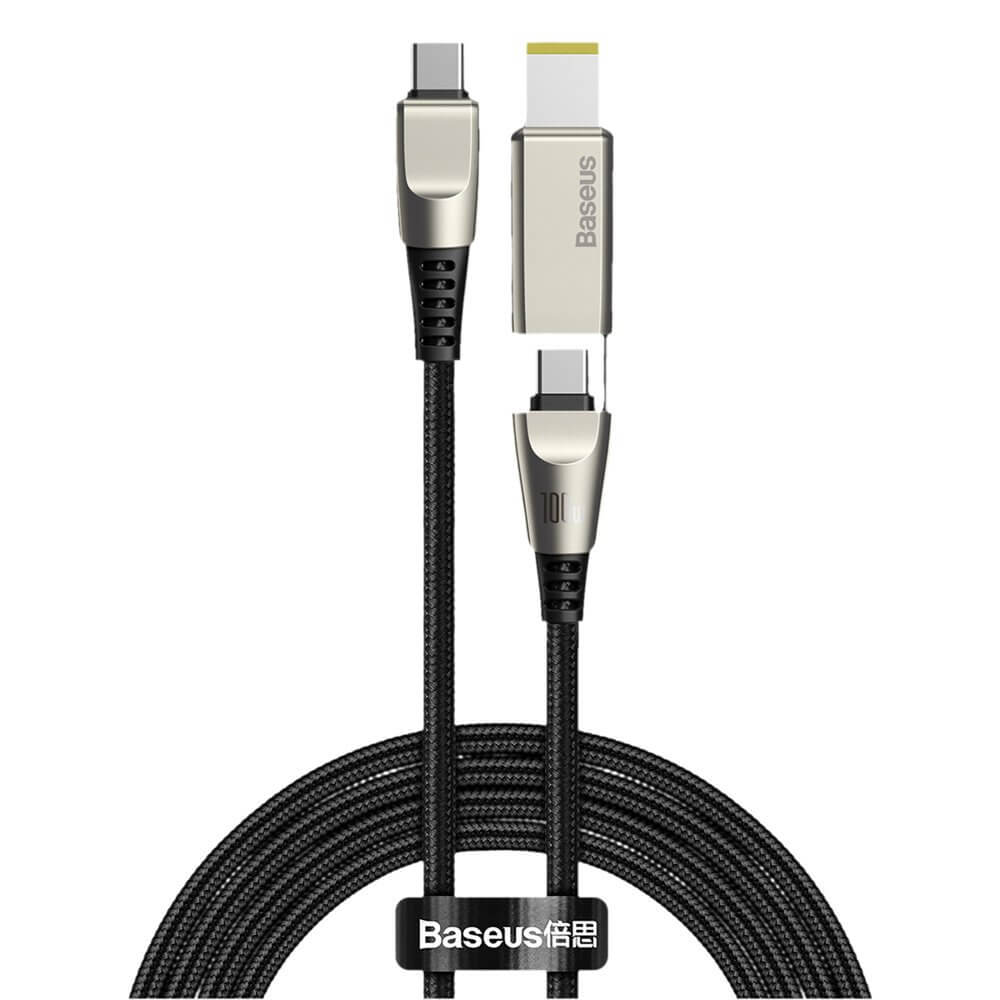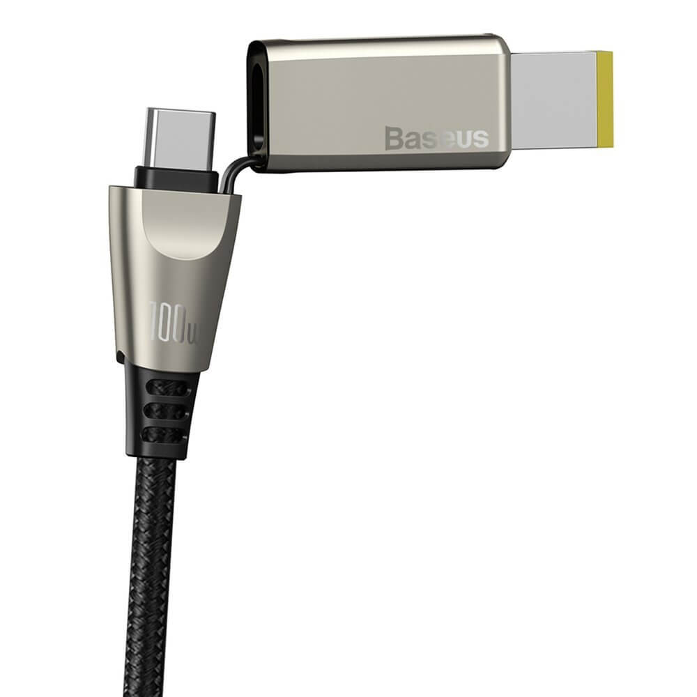 USB-C кабел с допълнителен адаптер за Lenovo лаптопи и бързо зареждане на устройства с USB-C порт (200 см) - Baseus Flash Series 2-in-1 USB-C & Lenovo Square Plug Cable (CA1T2-B01) (черен)