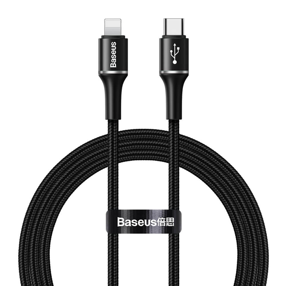 USB-C към Lightning кабел за Apple устройства с Lightning порт (100 см) - Baseus Halo USB-C to Lightning Cable (CATLGH-01) (черен)