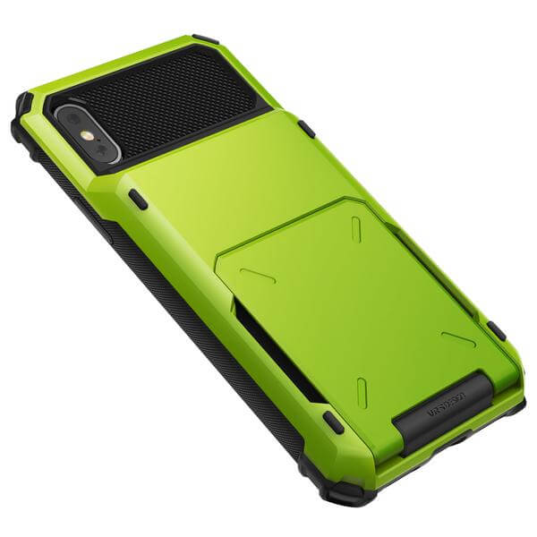 Verus Damda Folder Case - висок клас хибриден удароустойчив кейс с място за кр. карти за iPhone XS, iPhone X (зелен)