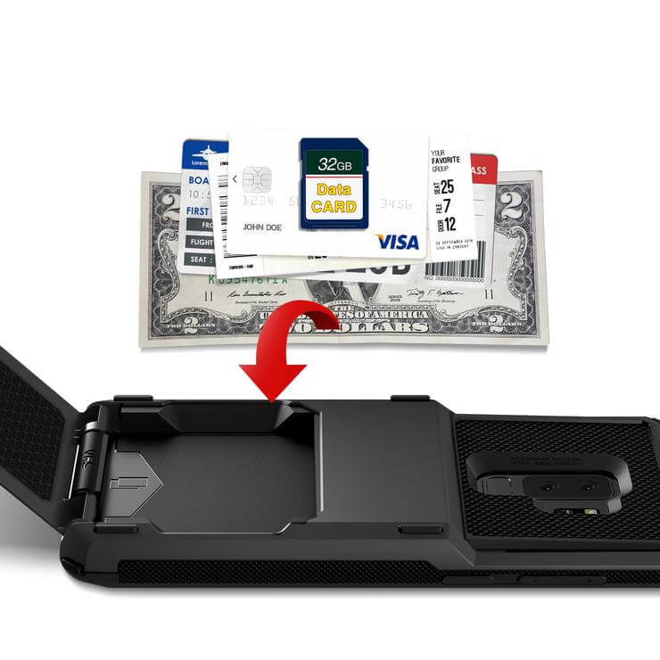 Verus Damda Folder Case - висок клас хибриден удароустойчив кейс с място за кр. карти за Samsung Galaxy S9 Plus (черен)