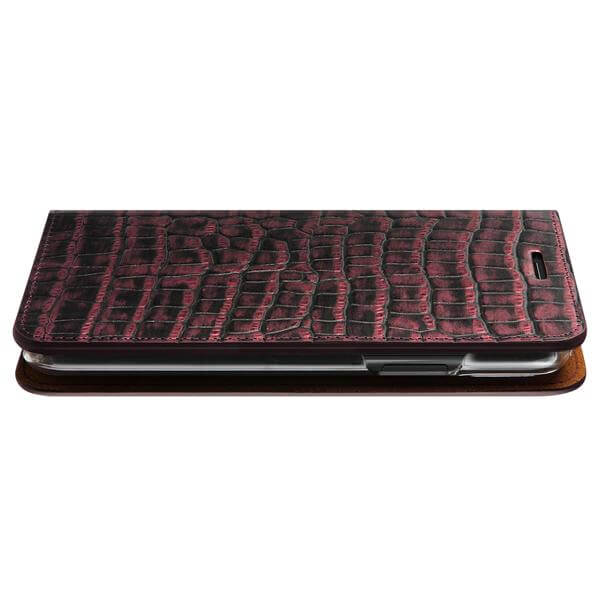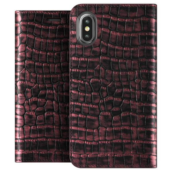 Verus Genuine Croco Diary Case - кожен калъф (естествена кожа), тип портфейл за iPhone XS, iPhone X (розов)