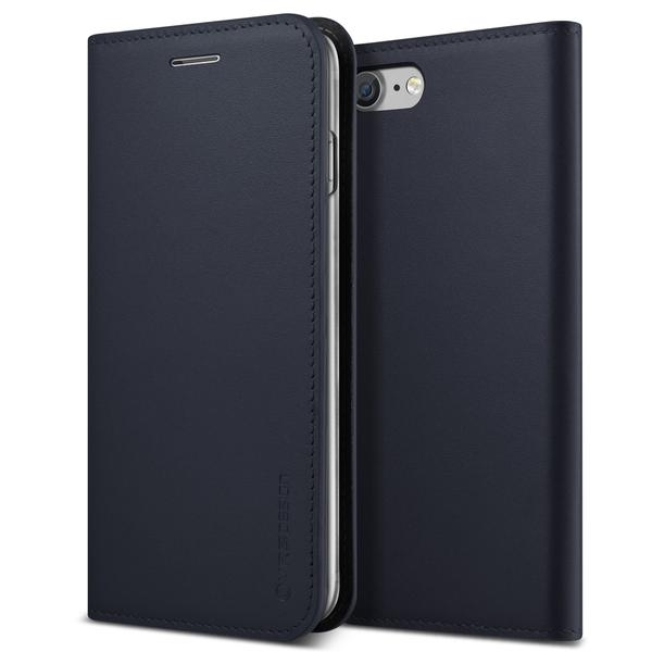 Verus Genuine Leather Diary Case - кожен калъф (естествена кожа), тип портфейл за iPhone 8, iPhone 7 (тъмносин)