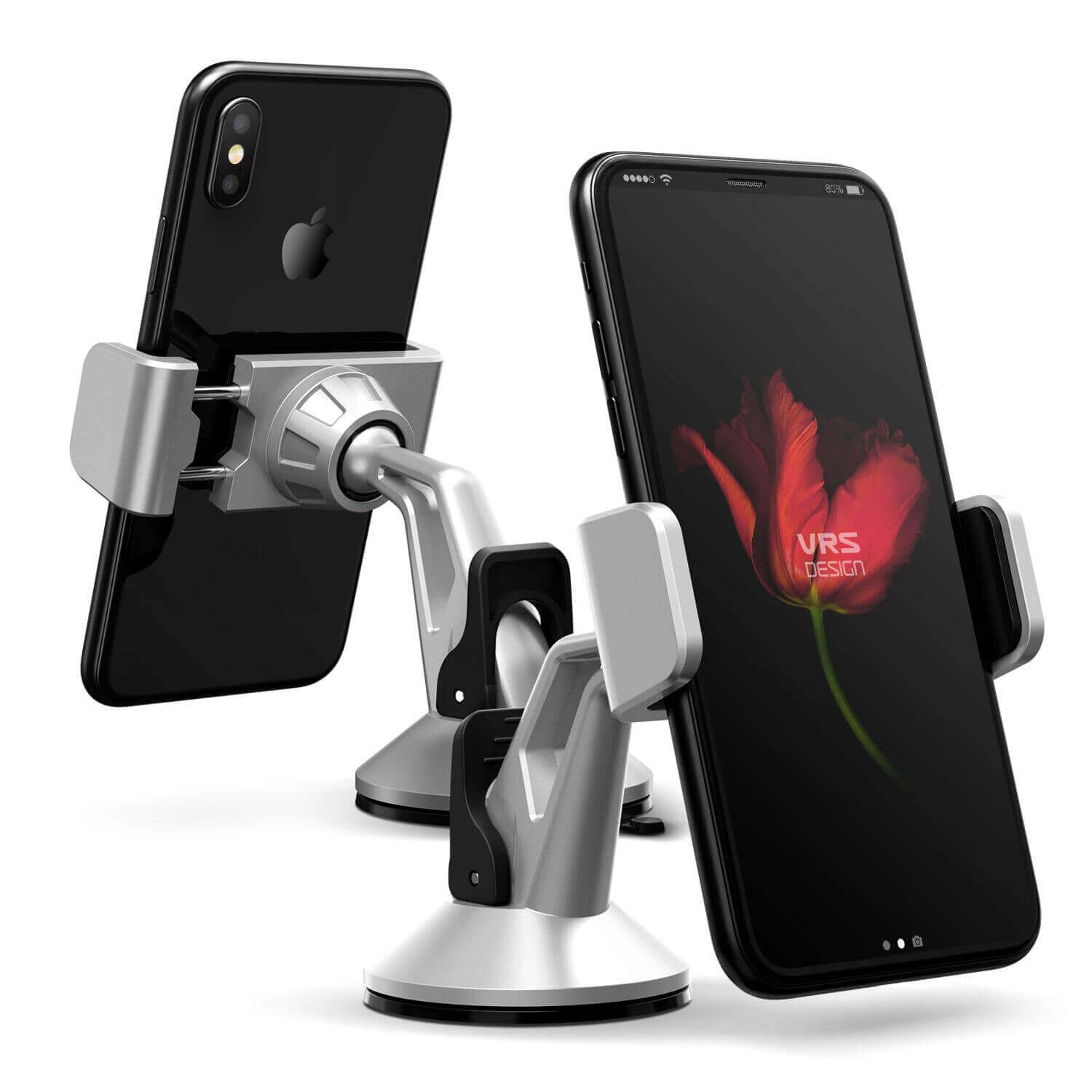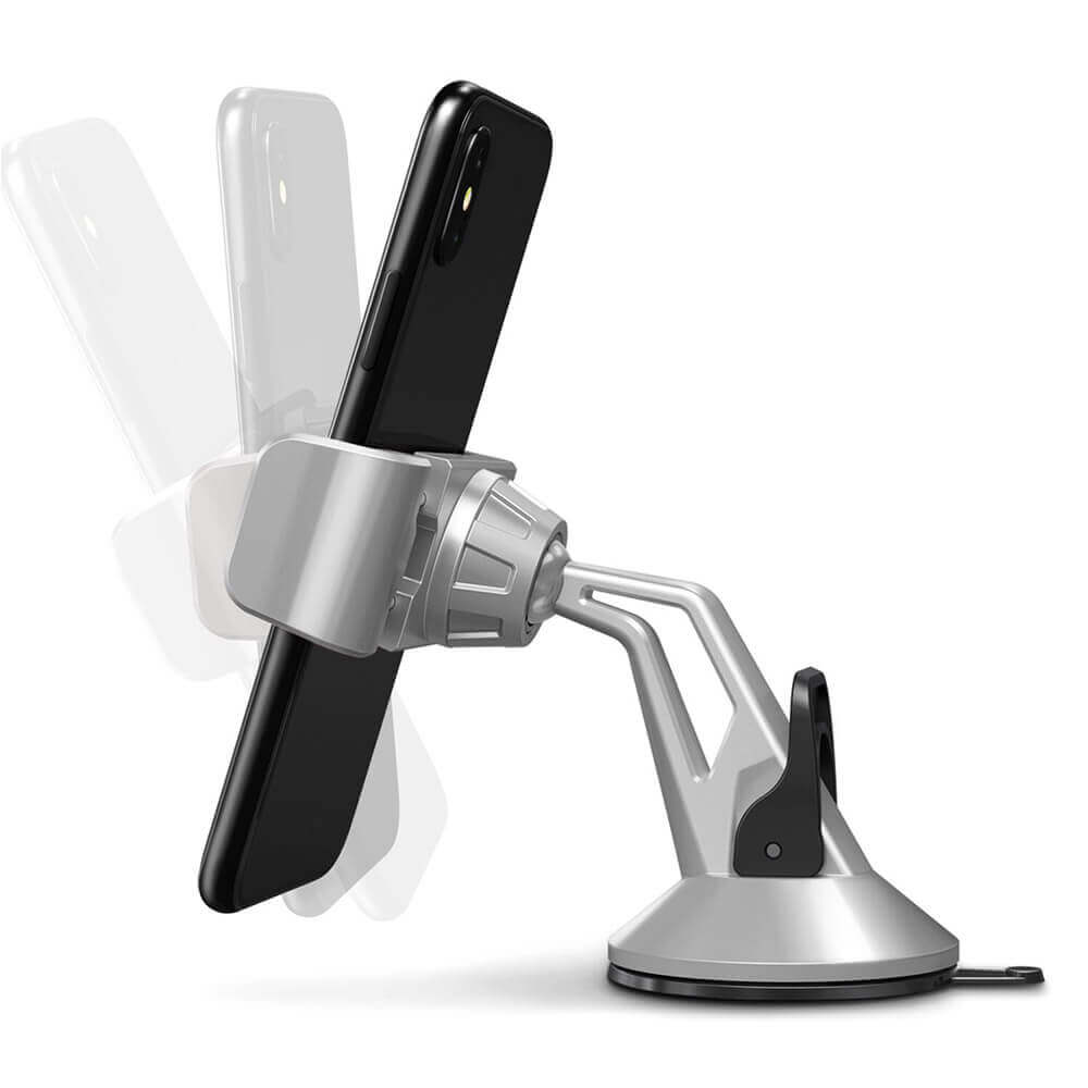 Verus Hybrid Grab Mini - поставка за стъкло и гладки повърхности за iPhone, Samsung и смартфони до 6.3 инча (сребрист)