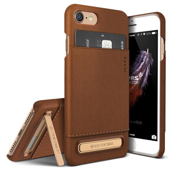 Verus Simpli Leather Case - кожен кейс с поставка и джоб за кредитна карта за iPhone 8, iPhone 7 (кафяв)
