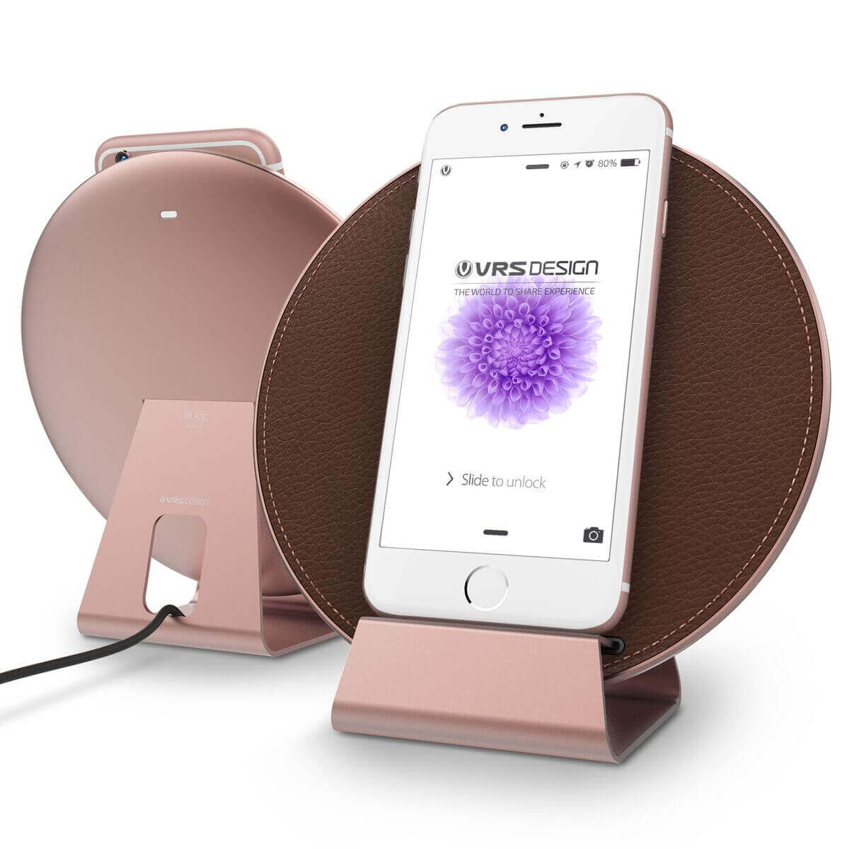 Verus Wireless Pad Halo - метална (с кожено покритие) поставка (пад) с Fast Charge за безжично захранване (розово злато)