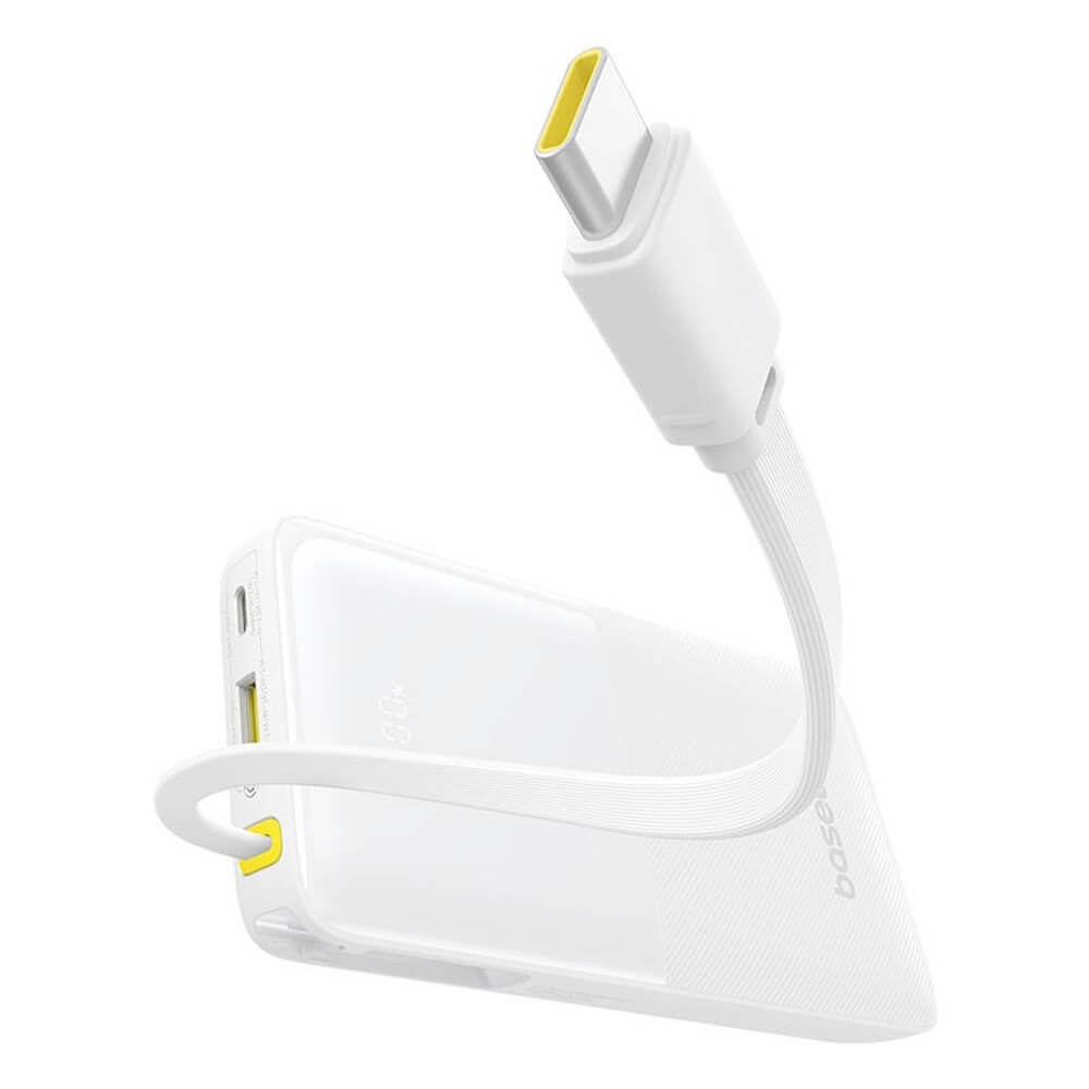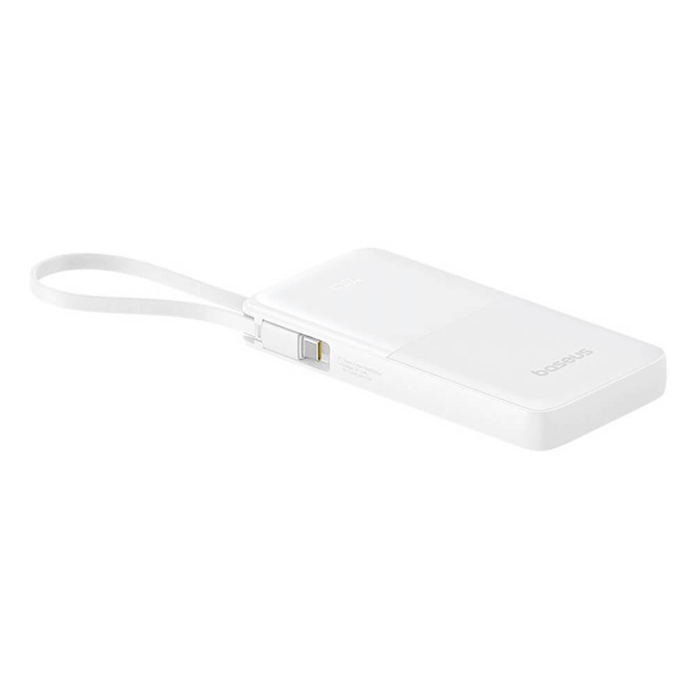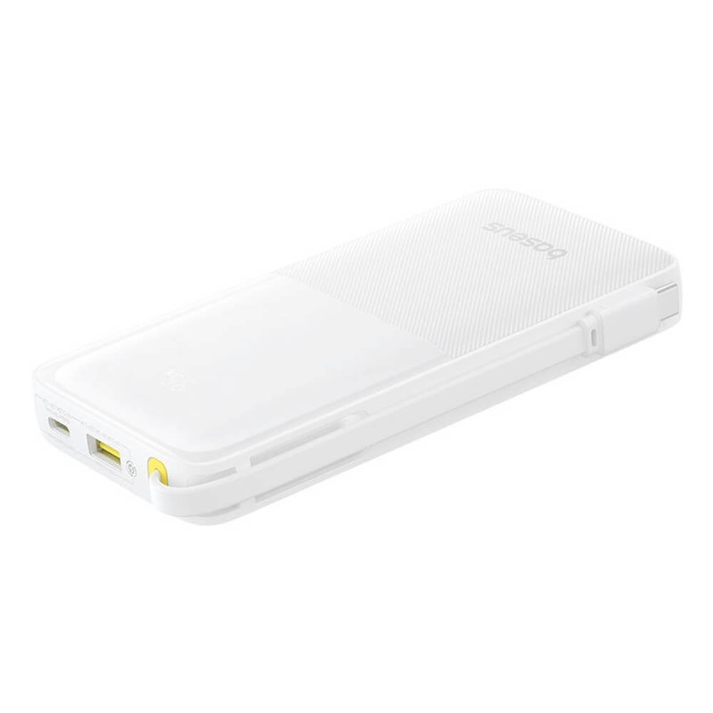 Външна батерия 10000 mAh с вграден USB-C кабел и 1xUSB-C, 1xUSB-A портове - Baseus Bipow 2 Digital Display Power Bank With USB-C Cable 20W 10000mAh (бял)