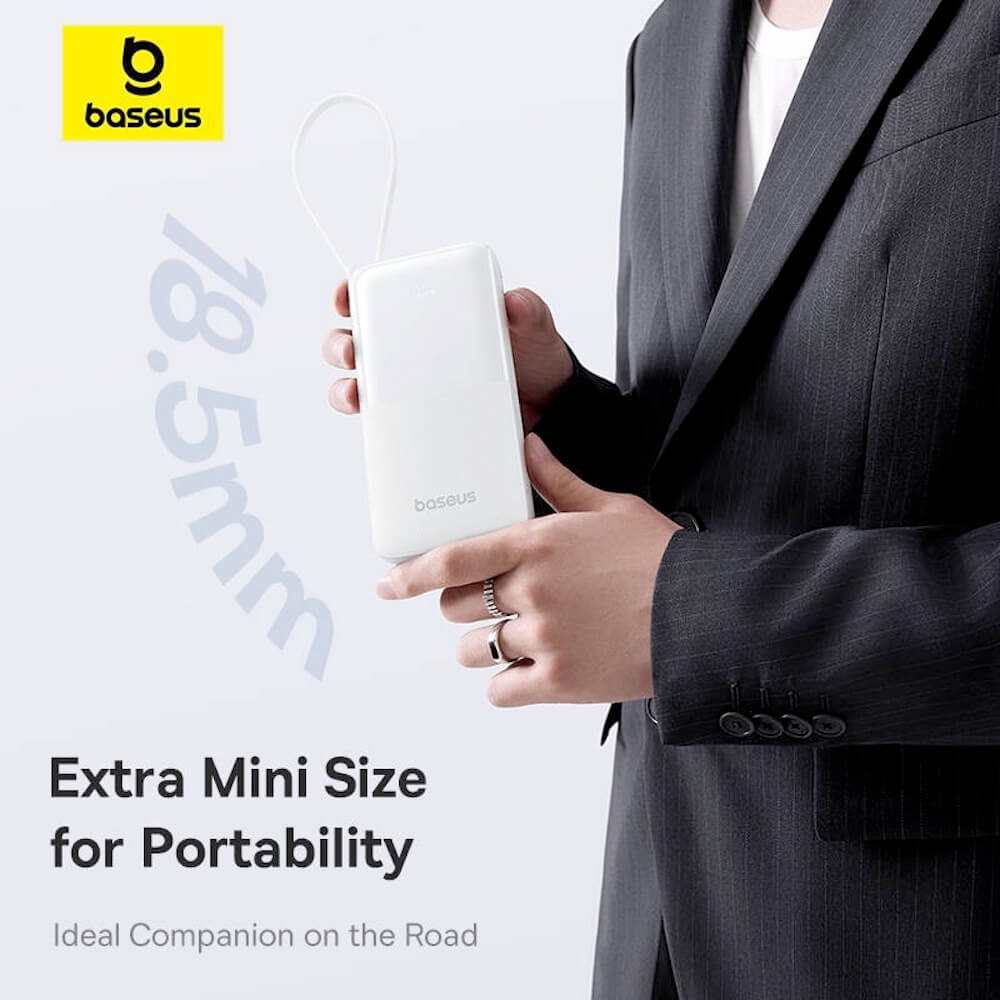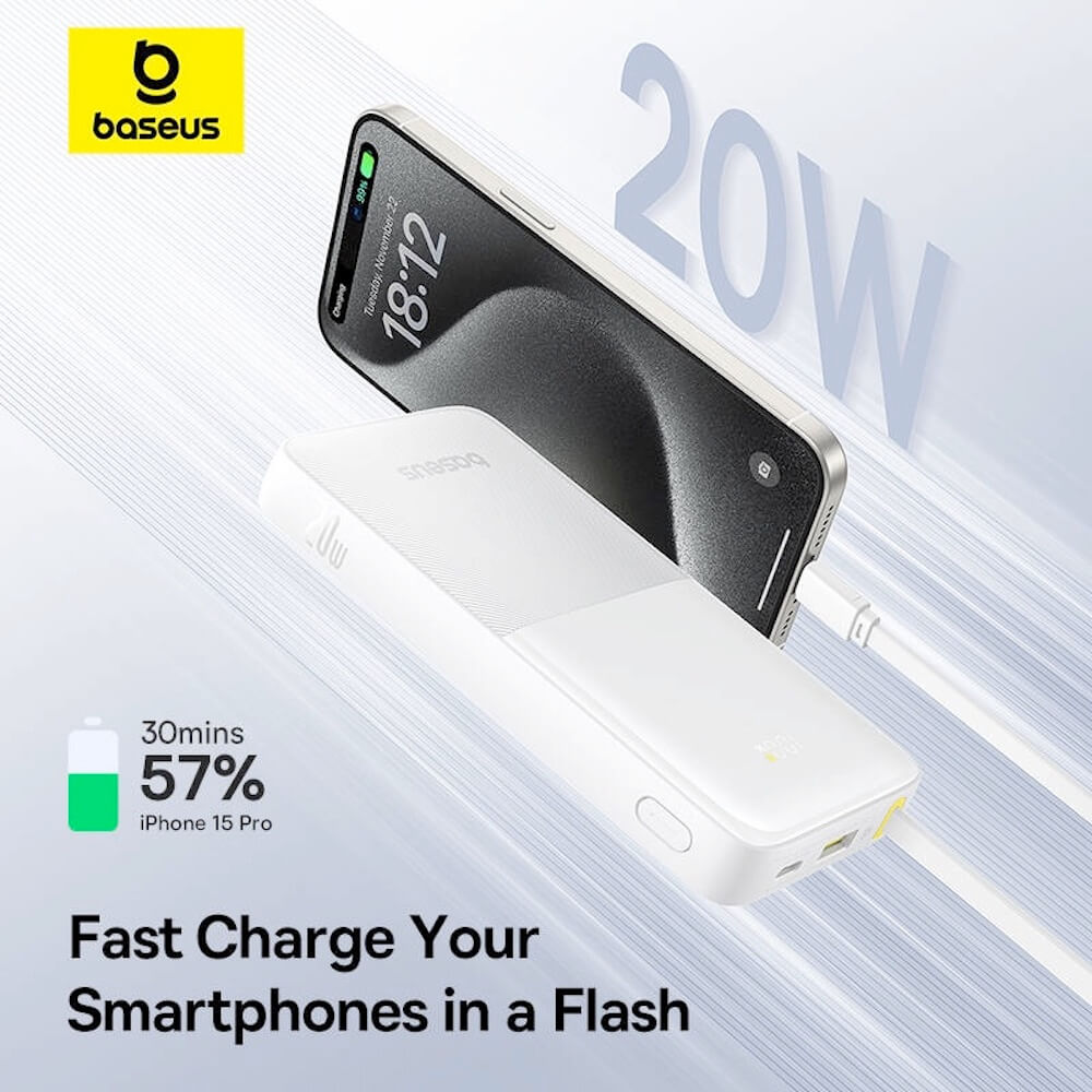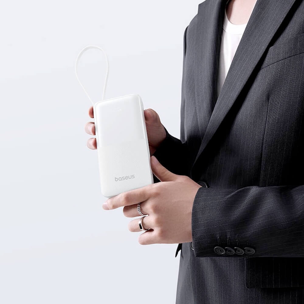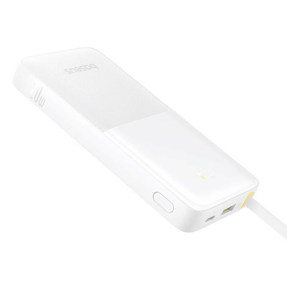 Външна батерия 10000 mAh с вграден USB-C кабел и 1xUSB-C, 1xUSB-A портове - Baseus Bipow 2 Digital Display Power Bank With USB-C Cable 20W 10000mAh (бял)