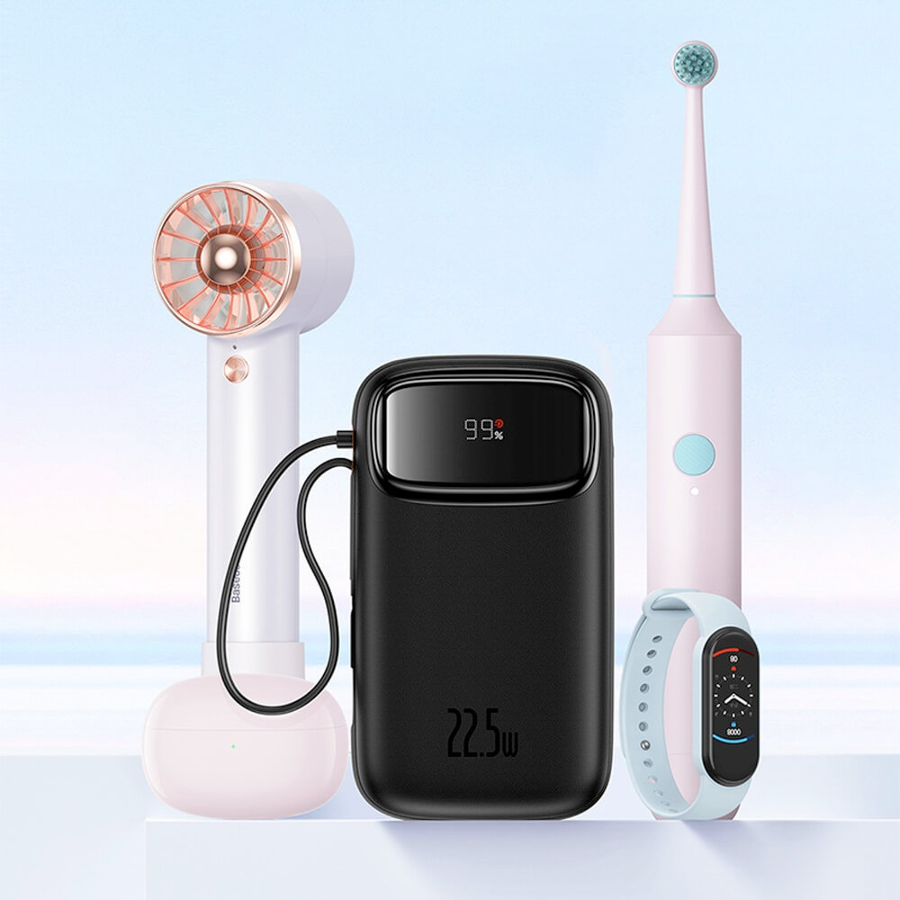 С Baseus Qpow2 можете да зареждате не само смартфони, но и таблети и лаптопи. Освен това, тя е подходяща и за по-малки уреди като настолни вентилатори и лампи. Удобният LED дисплей показва нивото на батерията, а вградените защити осигуряват безопасност при употреба.