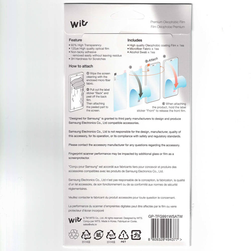 - 1 х Wit Samsung Screen Guard - 1 х алкохолна кърпичка - 1 х суха микрофибърна кърпа