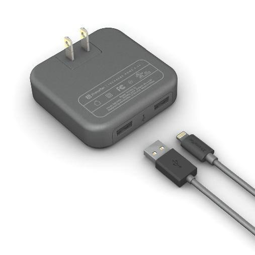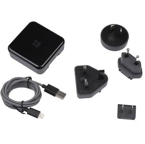 XtremeMac InCharge Home LT 4.2A - комплект захранване с 2 USB изхода, Lightning кабел и преходници за ел.мрежа за цял свят (черен)