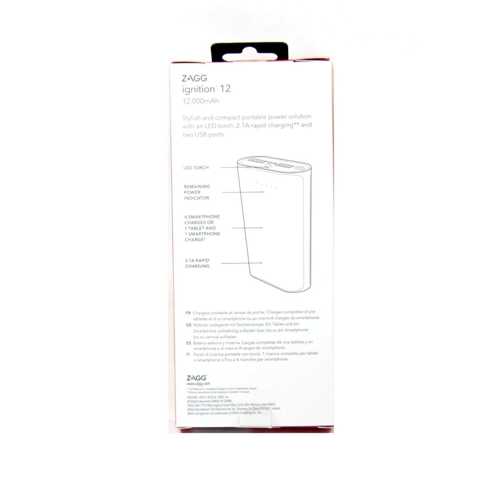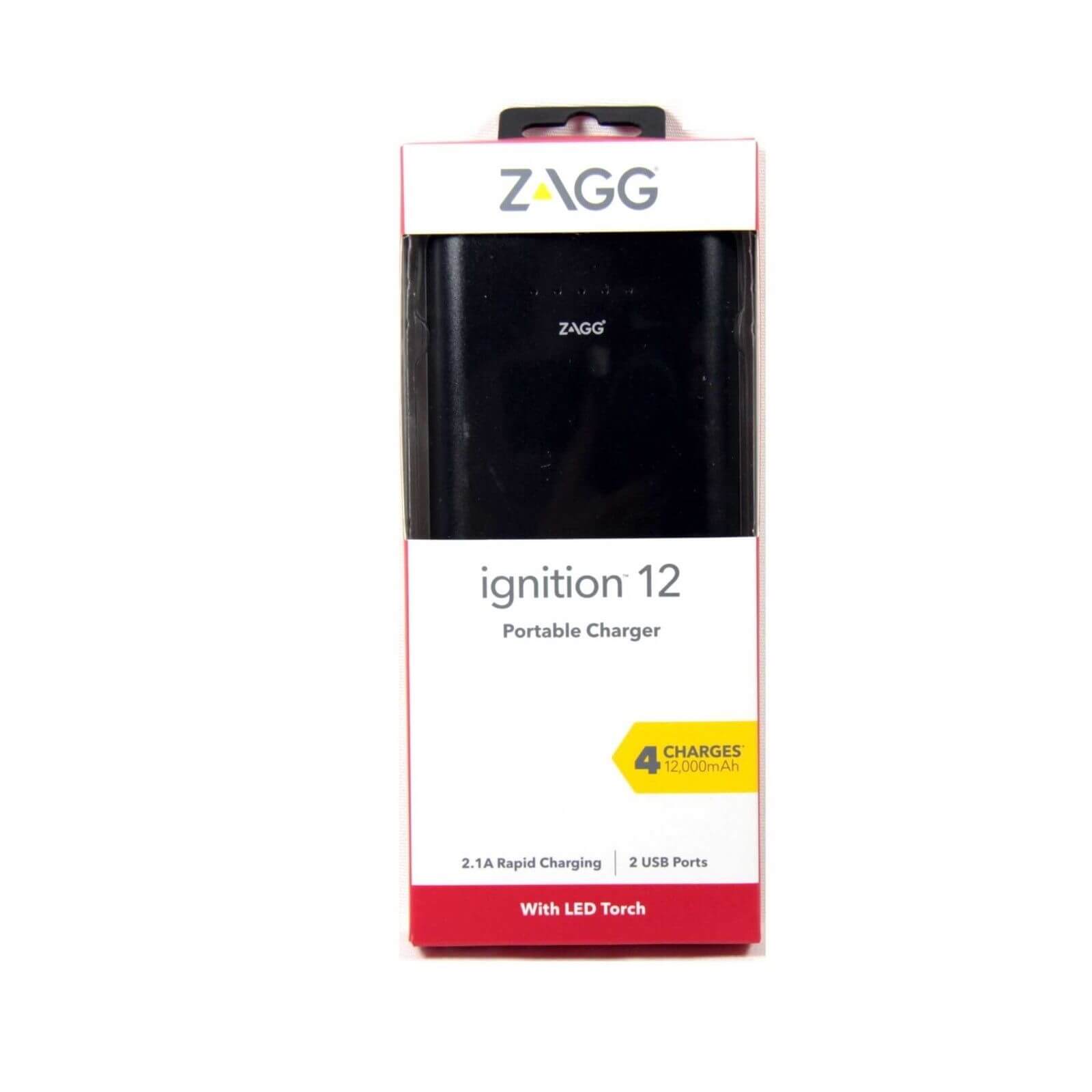 Zagg Ignition 12 Power Bank - външна батерия 12000mAh с 2 USB изхода за зареждане на мобилни устройства и фенерче