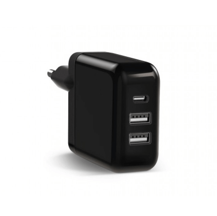 Със своите два USB-A порта и един USB-C порт, зарядното устройство позволява зареждане на до три устройства едновременно, което го прави изключително удобно за пътувания и ежедневна употреба.