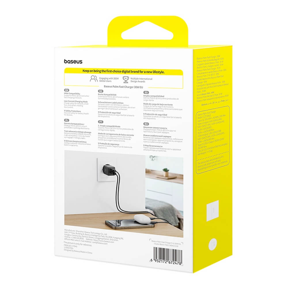 - В комплекта: - 1 x Baseus Palm Dual Fast Wall Charger 30W - 1 х ръководство за употреба