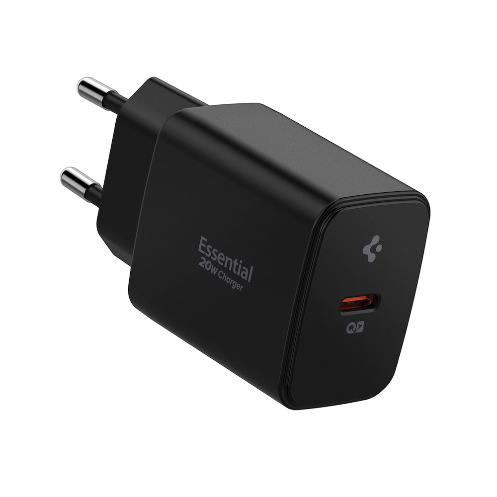 Захранване за ел. мрежа с USB-C изход с технология за бързо зареждане - Spigen Essential Wall Charger PD 20W (черен)