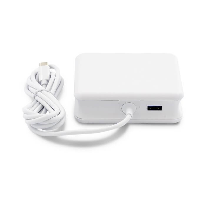 Захранване за ел. мрежа с вграден USB-C кабел за зареждане на компютри с USB-C порт и допълнителен USB изход за зареждане на мобилни устройства - LMP USB-C Power Adapter 61W