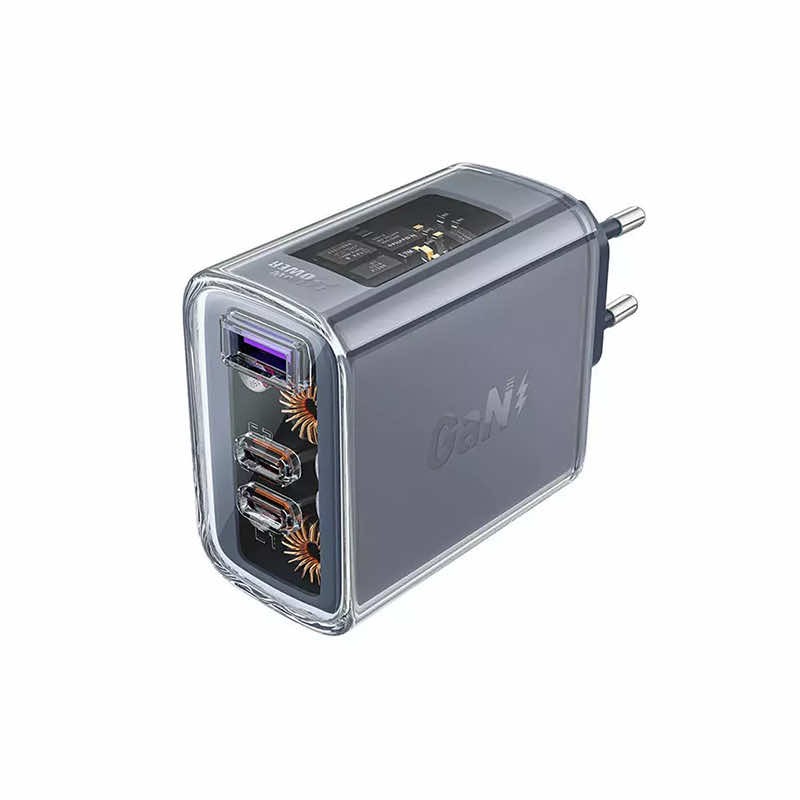Захранване за ел. мрежа за лаптопи, смартфони и таблети с 2XUSB-C и USB-A изходи (сив) - Acefast A45 Crystal Series 65W GaN Fast Charger
