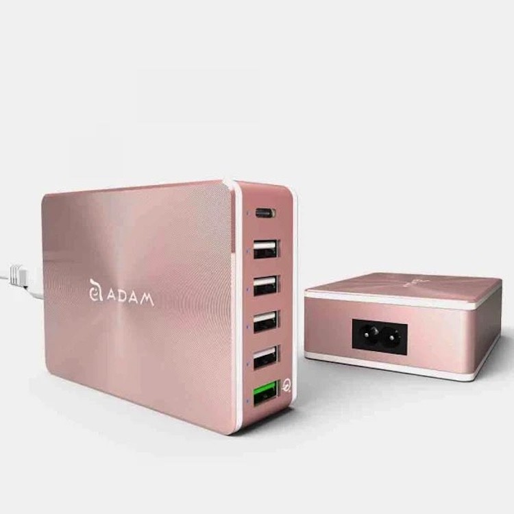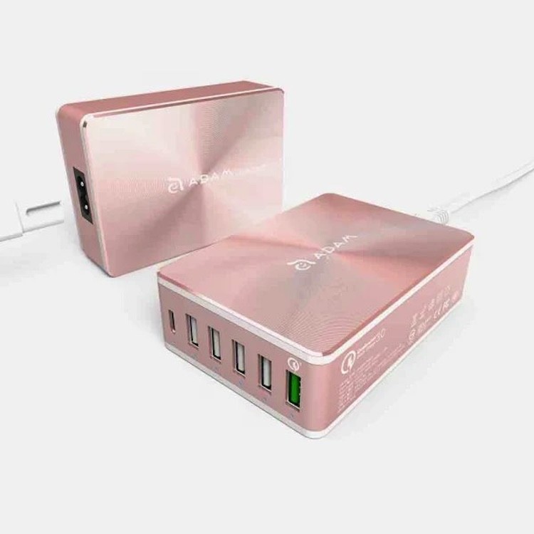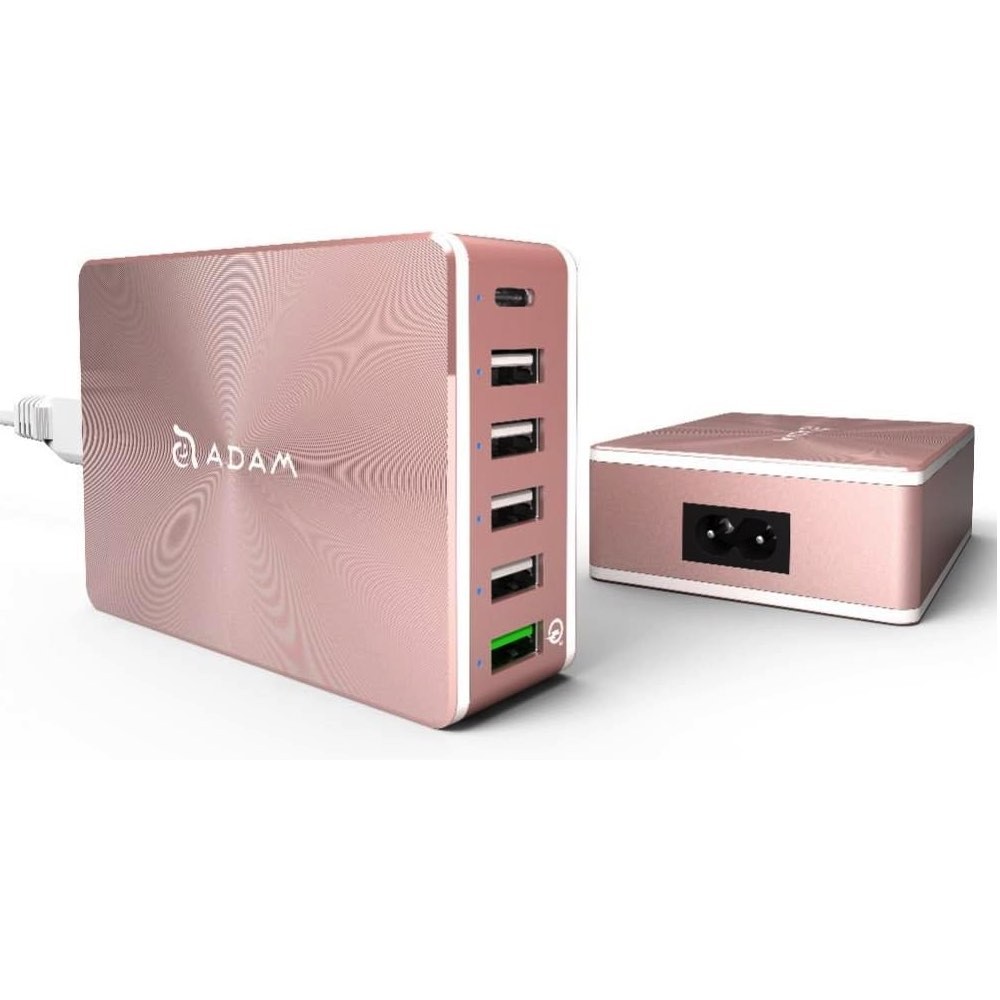 Захранване за ел. мрежа за лаптопи, смартфони и таблети с 5xUSB-A и 1xUSB-C изходи с технология за бързо зарежданe - Adam Elements Omnia PA601 Desktop Charging Station 81W (розовo злато)
