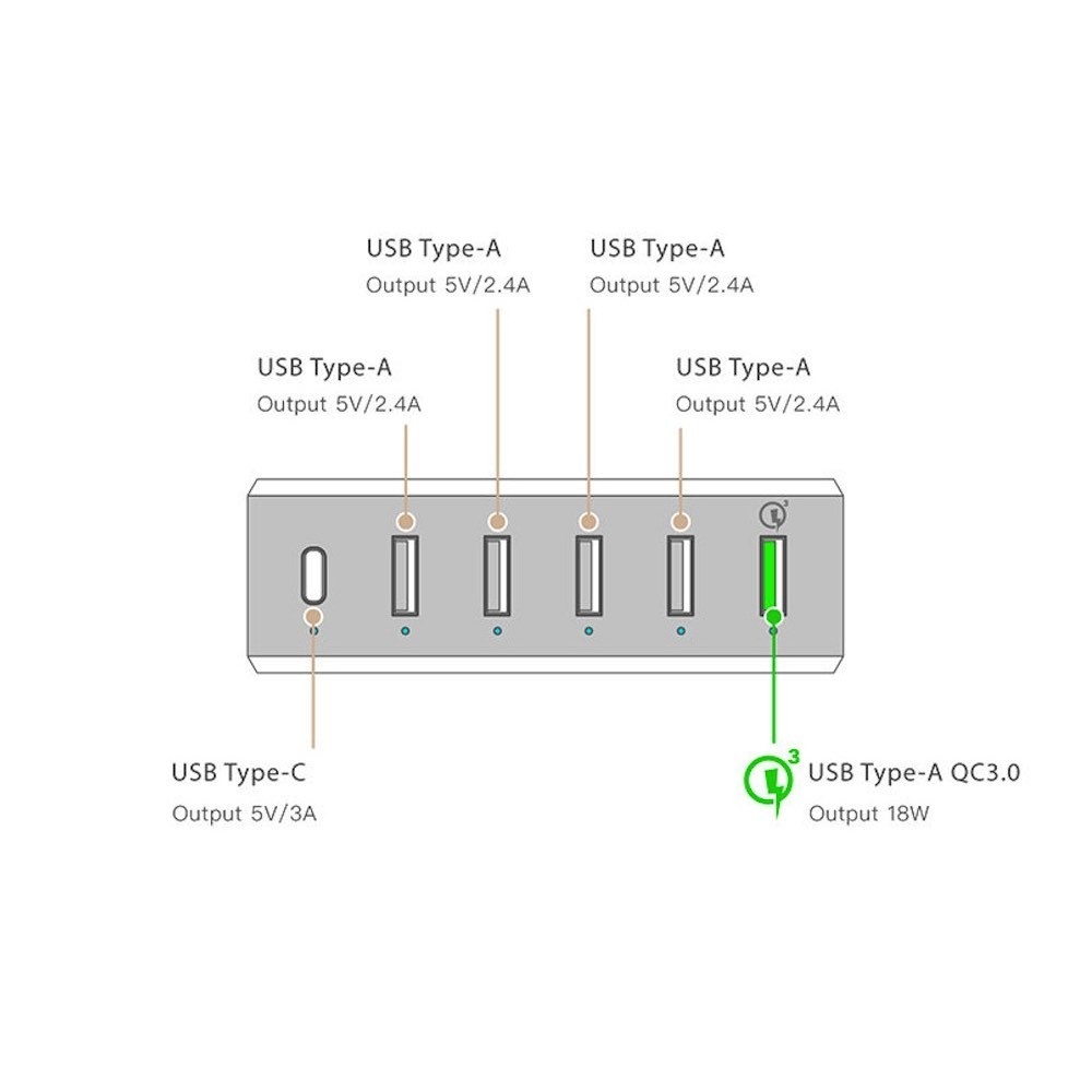 - 4 x USB-A 1: 5V/2.4A (12W Max)