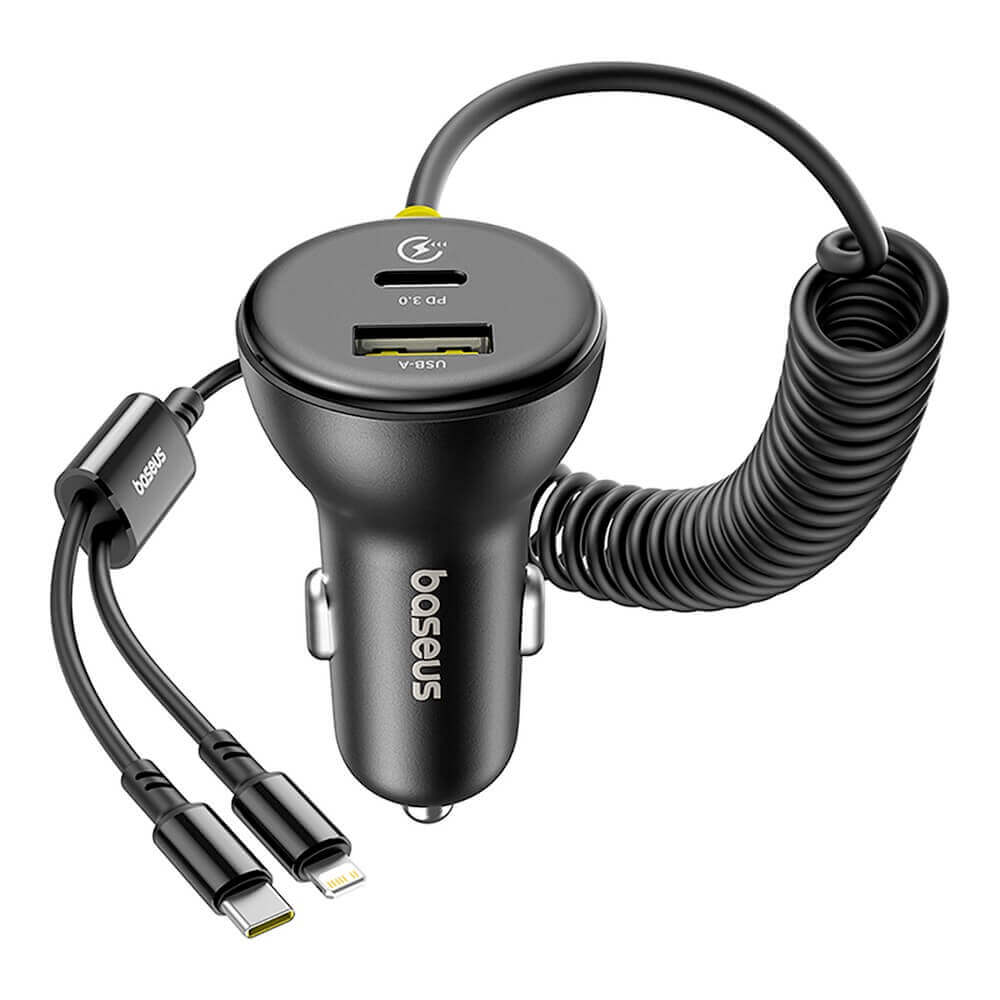 Зарядно за кола с вграден Lightning и USB-C кабели и USB-A и USB-C изходи - Baseus Circular 4 in 1 Fast Car Charger With Lightning And USB-C Cable 60W (черен)