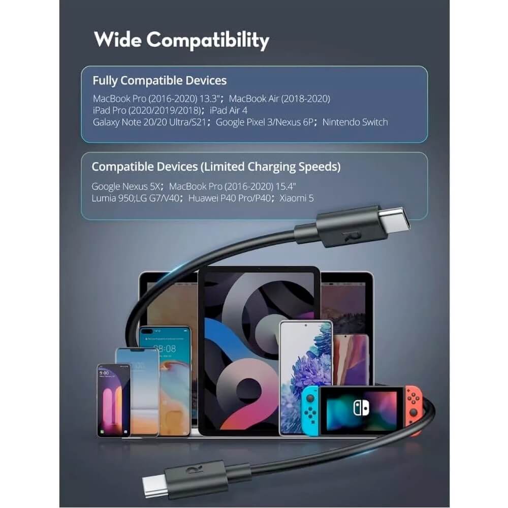 - В комплекта: 1 х RavPower RP-CB1021 USB-C to USB-C Cable 60W