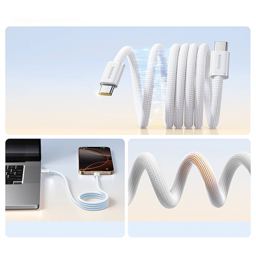 Здрав кабел с вграден магнитен органайзер и въжена оплетка за устройства с USB-C порт - Baseus Dynamic 4 Pro Magnetic USB-C to USB-C Cable 100W (бял) (100 см)