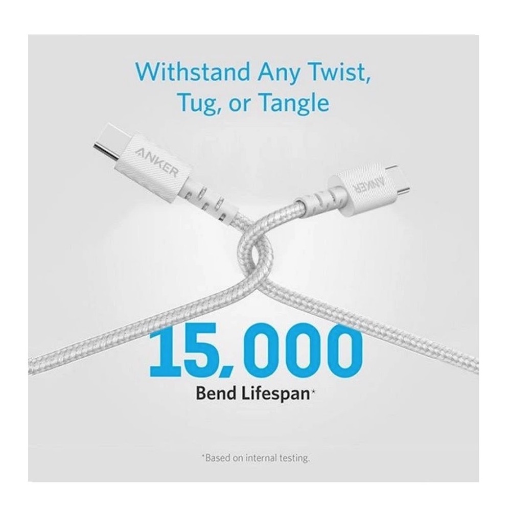 Здрав кабел с въжена оплетка и бързо зареждане за устройства с USB-C - Anker PowerLine Select+ USB-C to USB-C Cable (90 см) (бял)