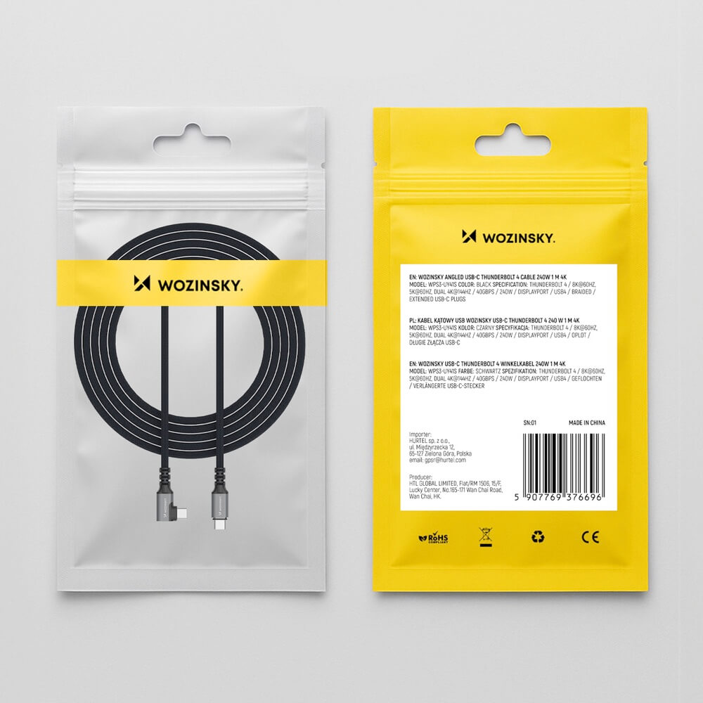 Здрав USB4 кабел с Thunderbolt 4 за устройства с USB-C порт - Wozinsky Thunderbolt 4 USB4 USB-C to USB-C Angled Cable 240W (черен) (150 см)