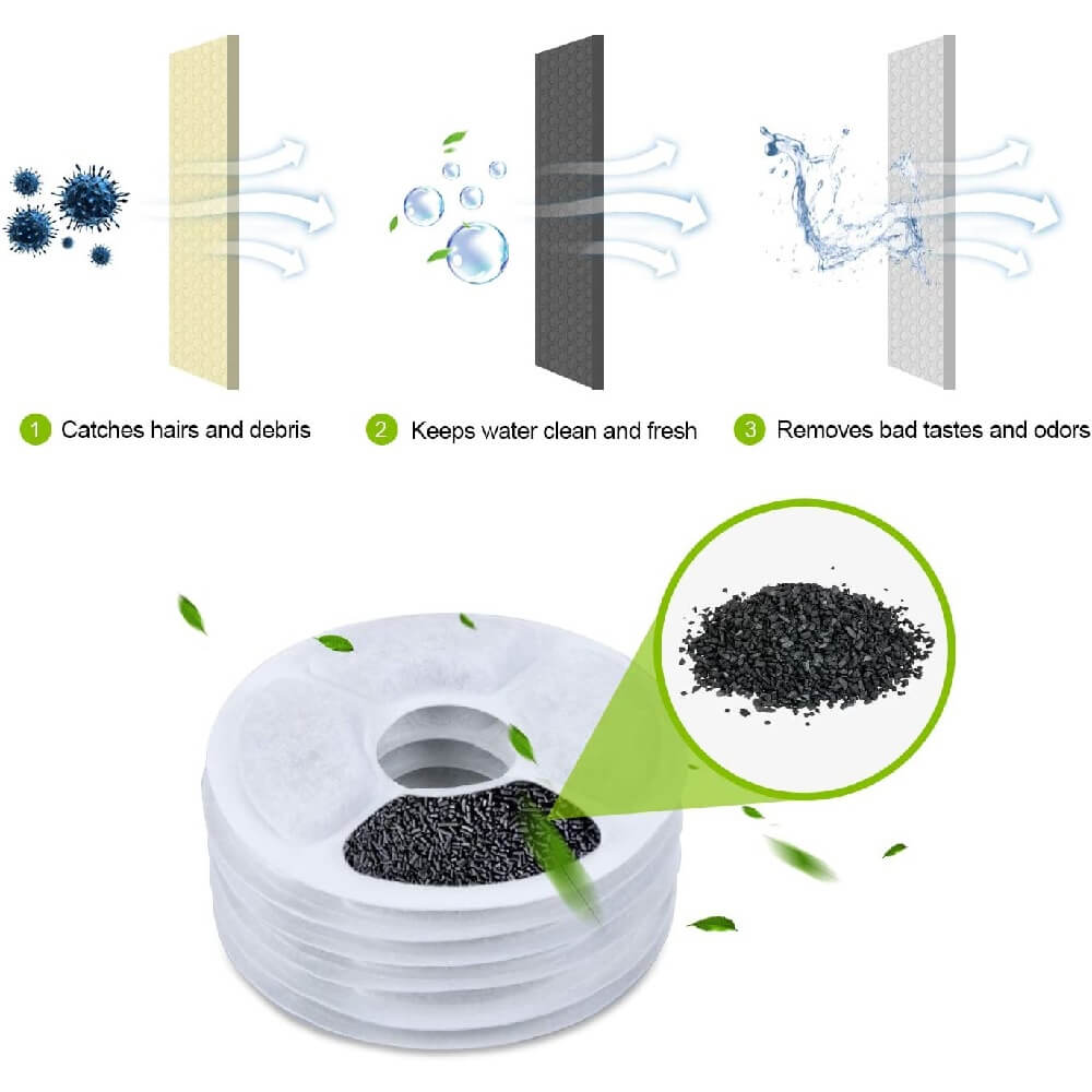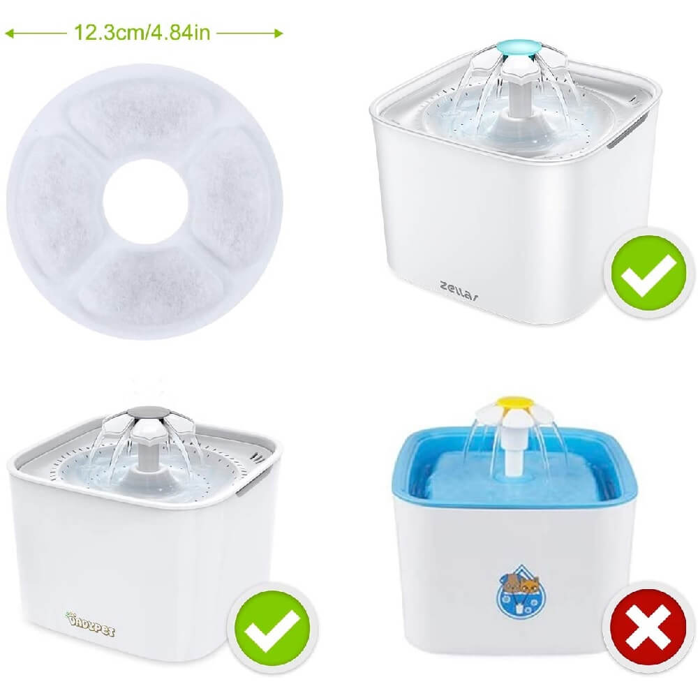 - Комплект от 6 резервни филтъра за поилка за домашни любимци за Zellar Pet Water Fountain и други поилки с подобни размери