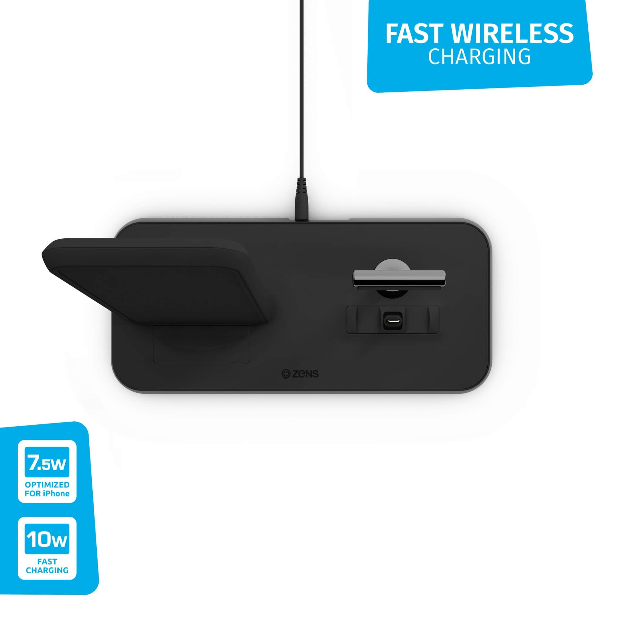 Zens Aluminium Stand + Dock 10W Qi ZEDC06B00 - докинг станция и поставка за безжично зареждане на Qi съвместими устройства и Apple AirPods (черен)