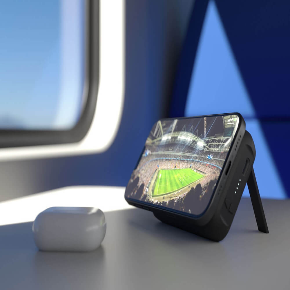 Zens Powerbank Dual with Kickstand ZEPP03M with MagSafe and Qi 4000 mAh - преносима външна батерия с безжично зареждане за iPhone с Magsafe и Qi съвместими устройства (черен)